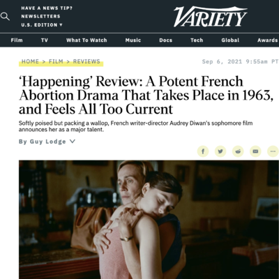Variety l'annonce : "Audrey Diwan, un talent majeur", à propos de son film L'Événement, lauréat du Lion d’Or à la Mostra de Venise.