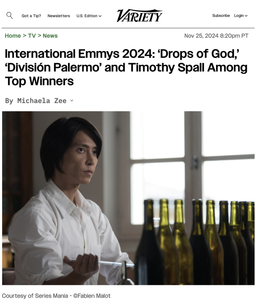 Et ce même média se fait l’écho du Emmy International de la meilleure série dramatique reçu par Les Gouttes de Dieu.
