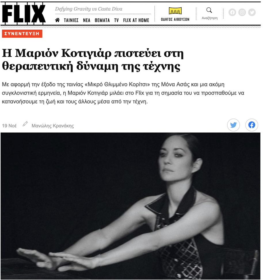 Et en Grèce, le magazine Flix fait de même avec Marion Cotillard et la sortie de Little Girl Blue.