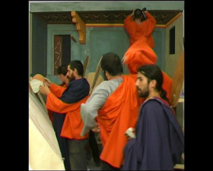 Dans un long plan-séquence, treize ouvriers construisent le célèbre décor de La Cène, tableau de Duccio di Buoninsegna.