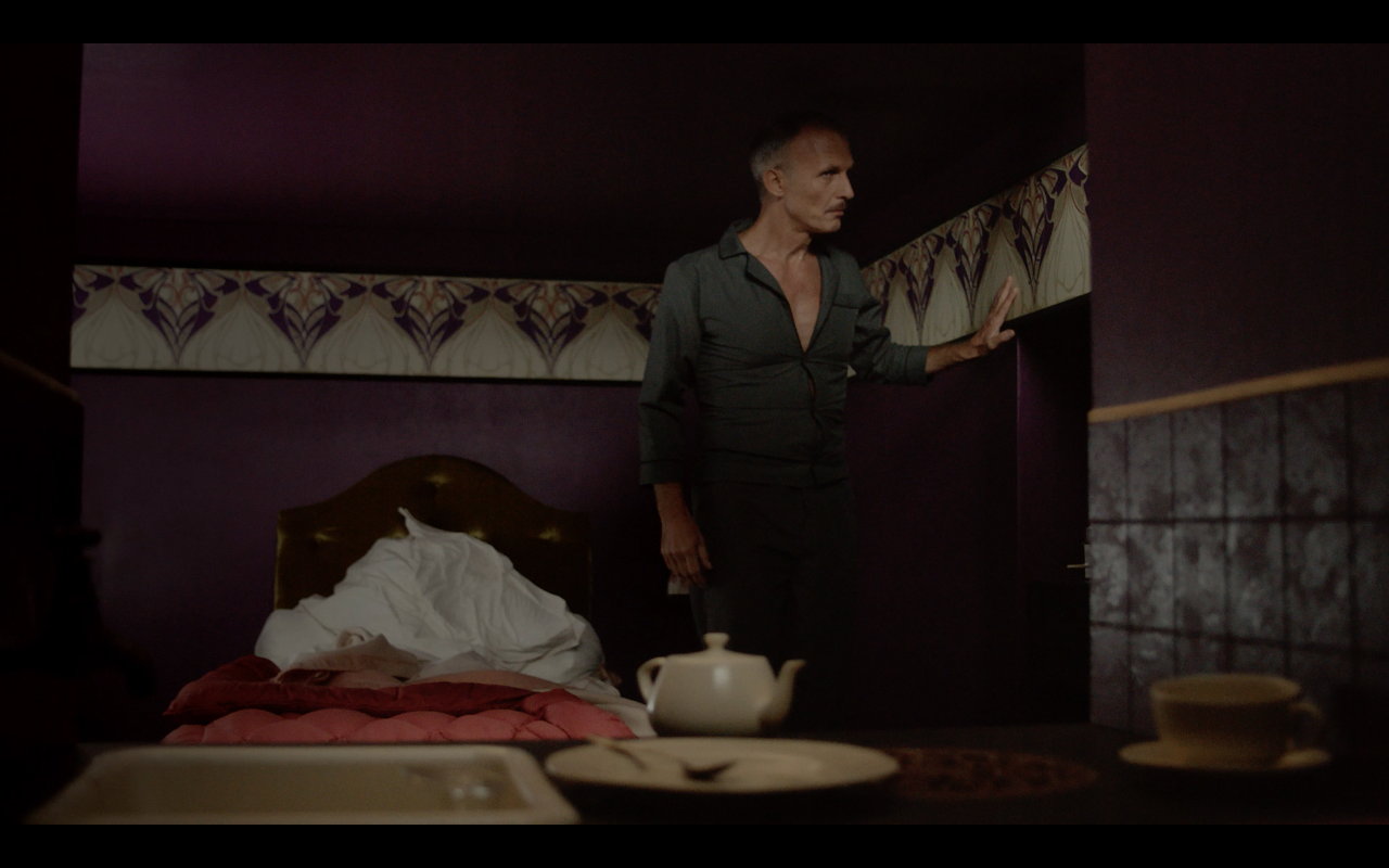 Un homme seul, au milieu d'une chambre. L'endroit est très confiné, renfermé, discret, feutré : impénétrable. Son quotidien : des gestes précis, répétés, ponctués, protocolaires. Toujours les mêmes bruits sourds au-dessus de sa tête. Qu'attend-il ? Où est-il ? La chose la plus étrange, cette chambre qui rétrécit étrangement, jour après jour jusqu'au septième.