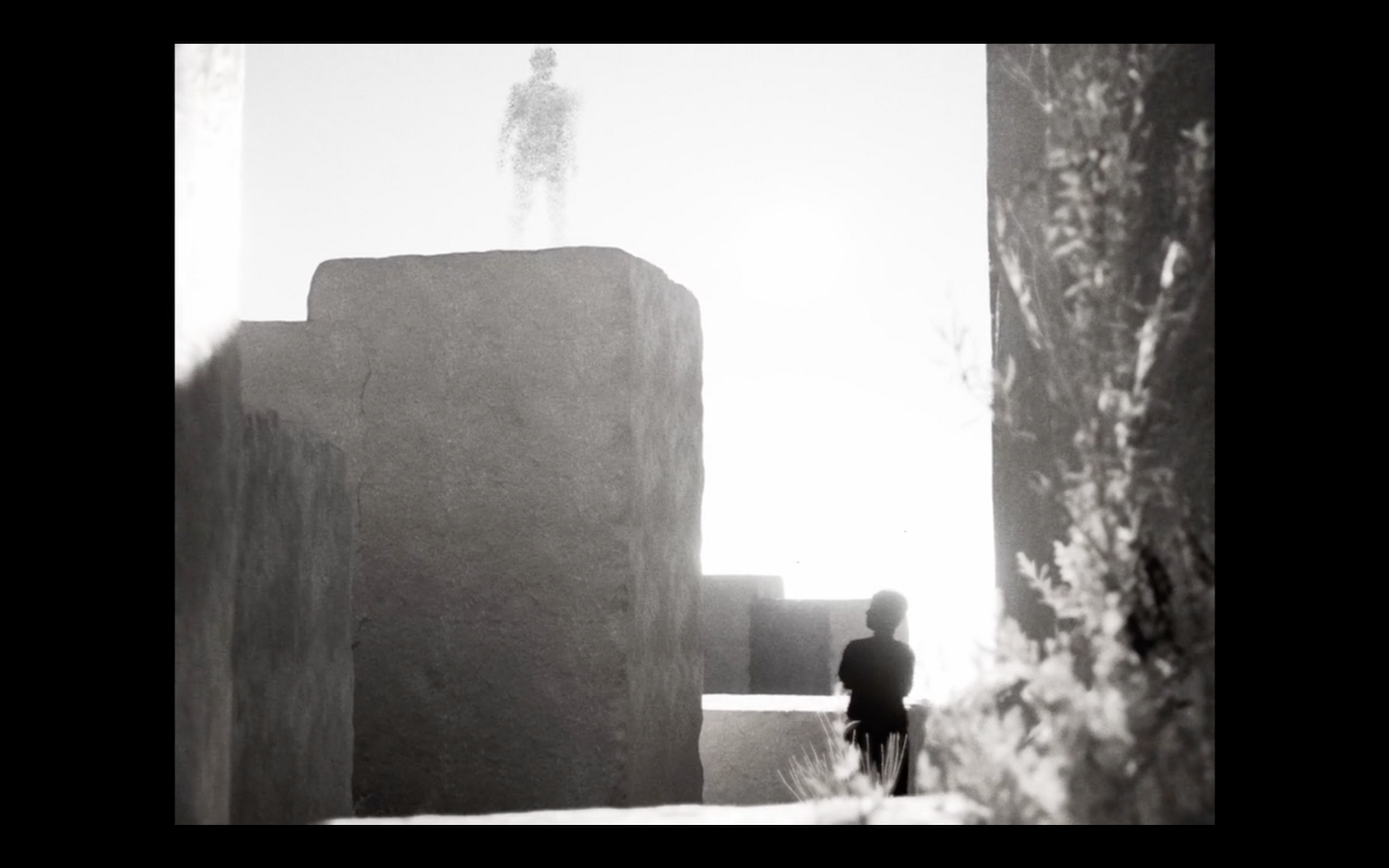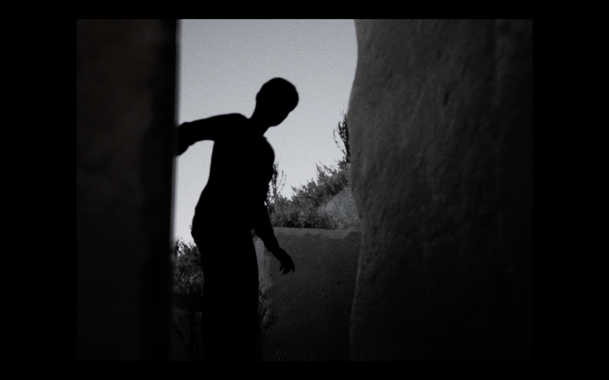 Sur une île de Méditerranée, une silhouette sombre navigue entre ombres et stèles. Guidée par une litanie poétique, elle doute de la verticalité, de son existence et descend vers l’ombre sous l’ombre, où tout se résout. La réponse se trouve dans le monde sous le monde, le soi à l’intérieur de soi. Une hypnothérapie visuelle.