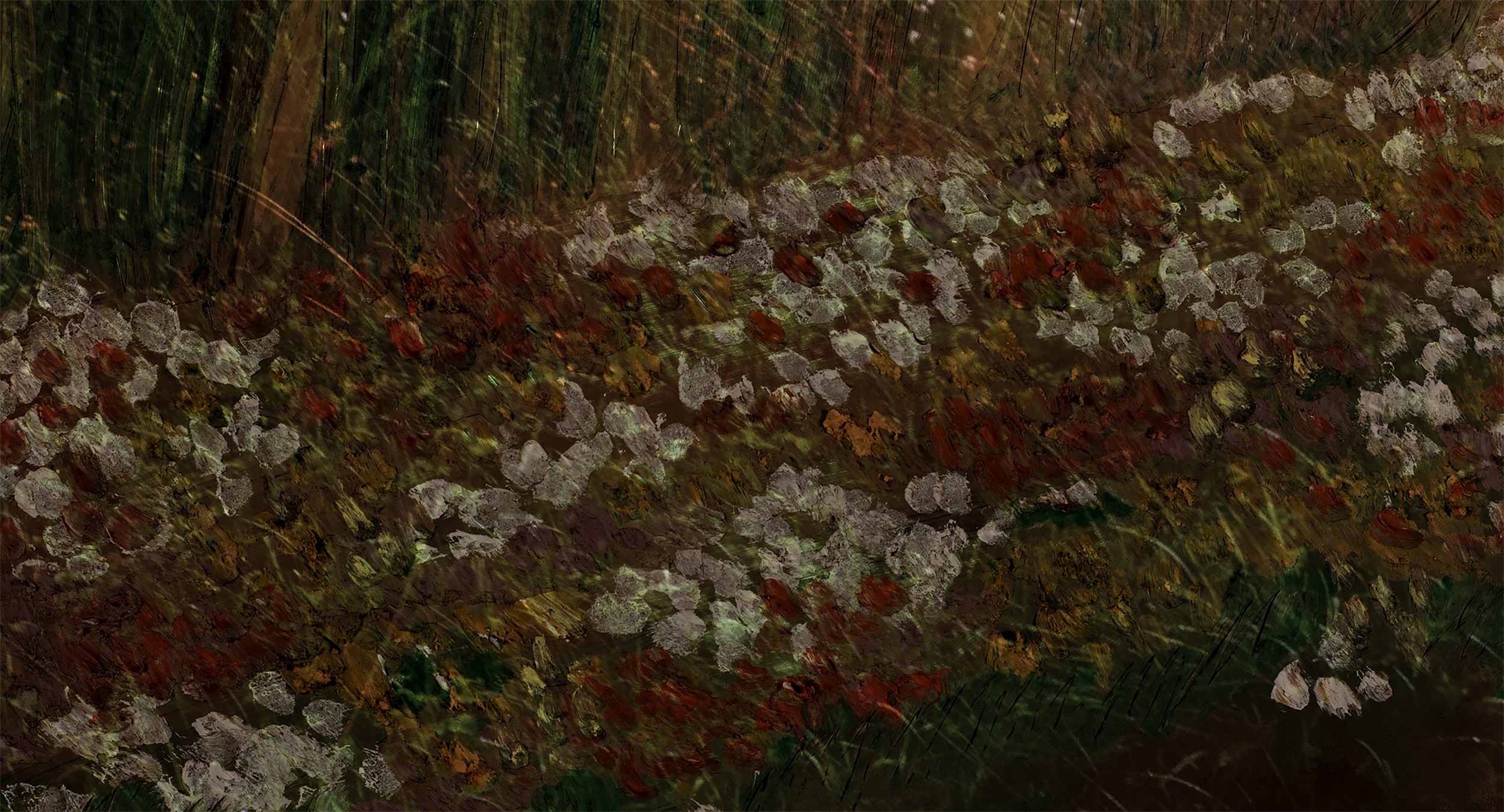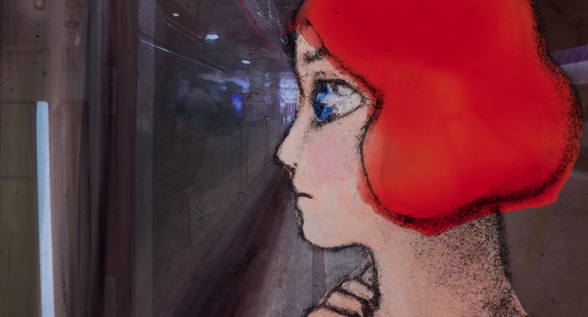Rouge monte dans le train. Si elle pouvait disparaître à cet instant, elle le ferait. Tout est décalé, irréel. Les souvenirs se mêlent au paysage. L’espace-temps se déchire. Une petite fille court vers une maison grinçante. Des herbes folles poussent dans le train. Rouge affronte son passé à contre-courant.